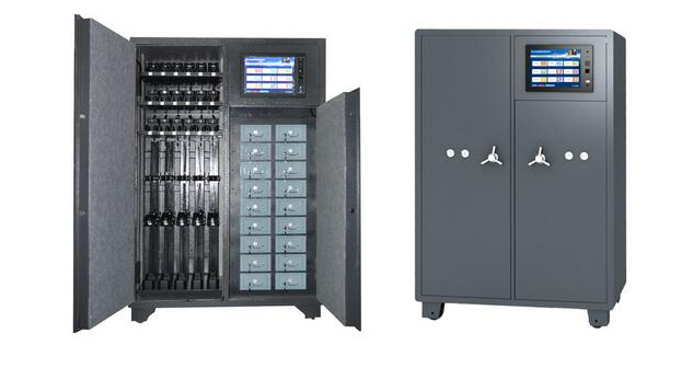 系統應配備大功率的備用電源,以保證當外部停電時,槍彈柜系統能夠正常運行,電池后備時間應滿足相關使用要求。同時,電子控制系統中應有專用電池檢測模塊,實時監測外部輸入電源及UPS電源運行情況,斷電即發出報警聲音并將報警信號發送給服務器;服務器按照規程通知相關管理人員。