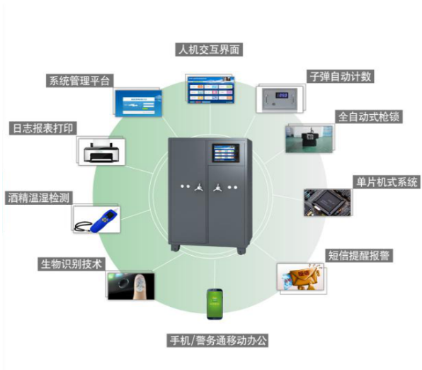 彈藥倉內應設稱重傳感器等感應設備實現子彈的自動計數。為保持柜內的環境條件穩定,槍彈柜一般配置溫度和濕度控制設備。