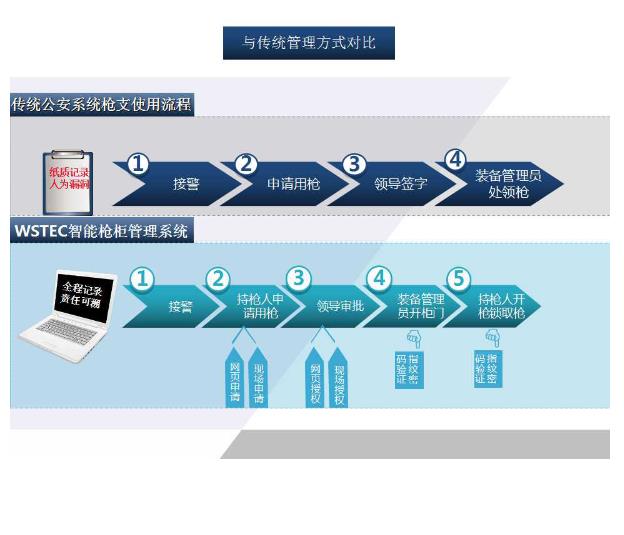 智能槍彈管理系統,具有良好可操作性的用槍程序,明確了用槍環境使用槍支的程序,讓槍支彈藥收發可控,一切有據可依,有跡可尋,權責清晰明確,讓管理更規范,用槍更安全!