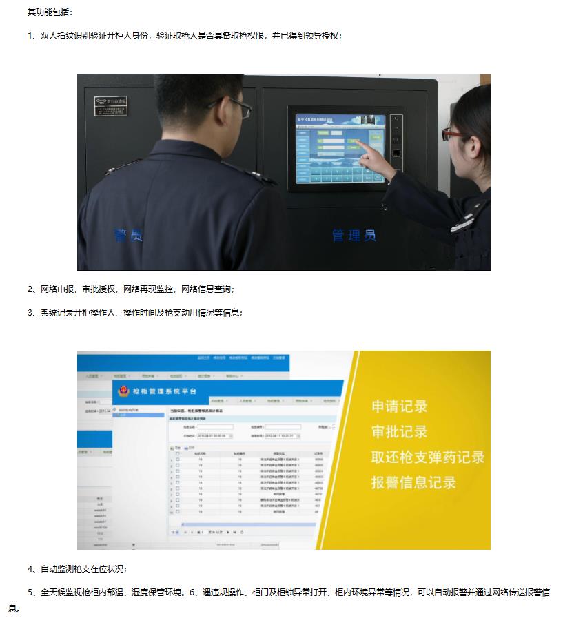 如槍支和彈藥未能在指定時間交還或遭到破壞違規開啟,系統還會向有關人員發出短信等提醒與報警。